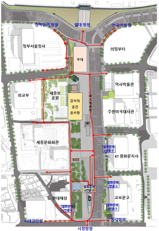 ※ 광화문광장 임시통행로 : 붉은색 화살표